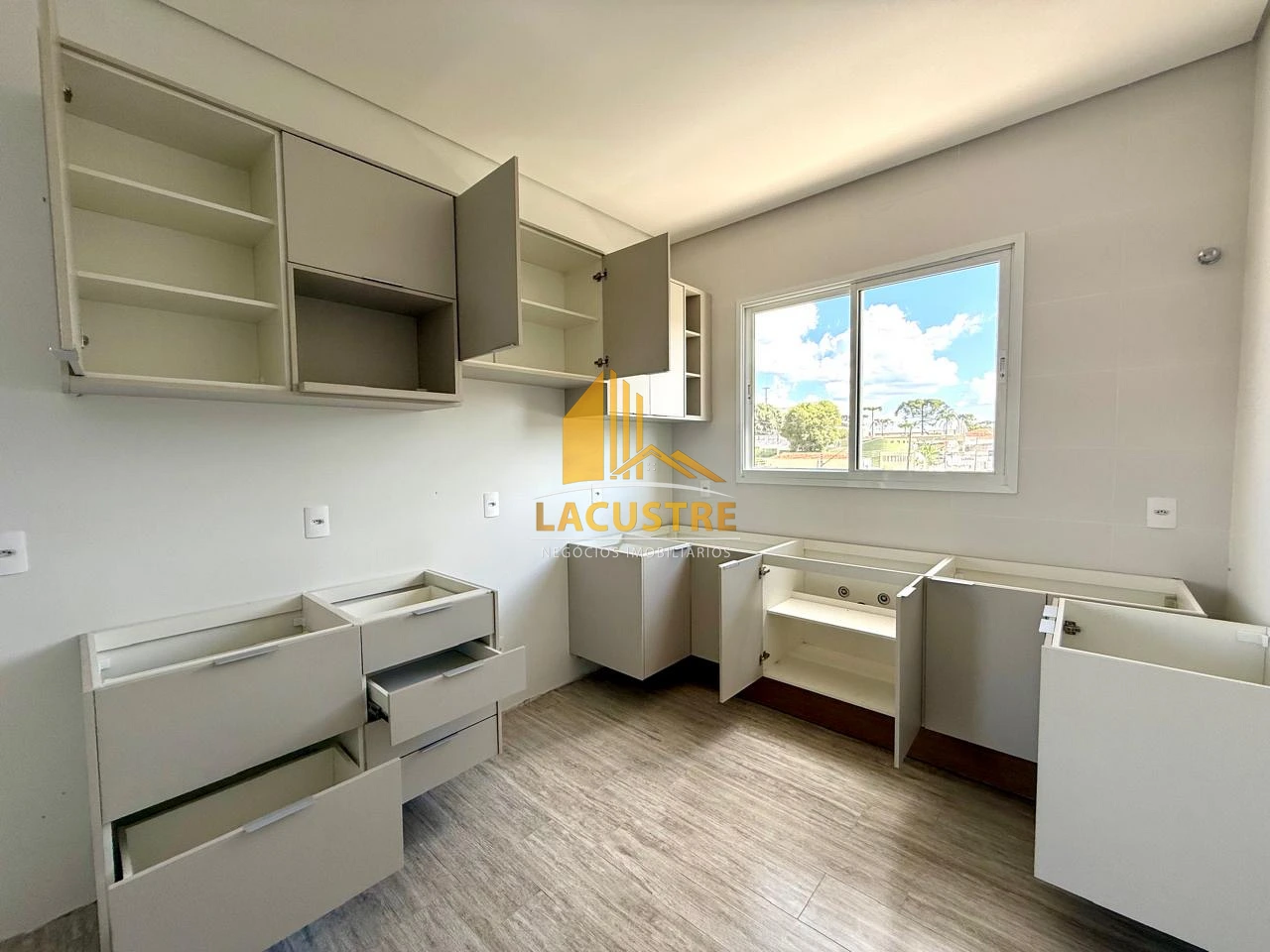 Está com armários de cozinha e banheiros, tudo planejado e da marca Italínea, conhecida no mercado por sua boa qualidade.
